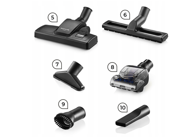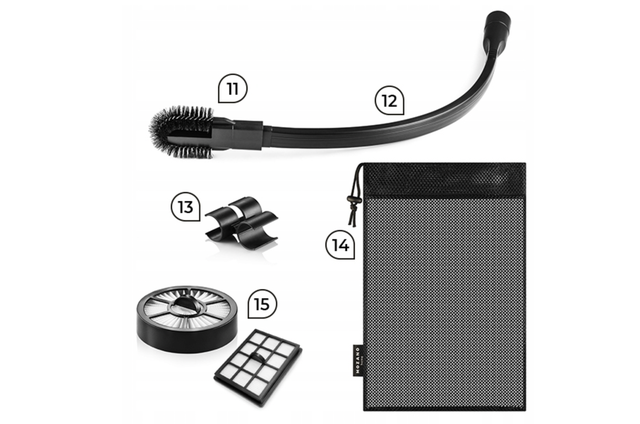- Широкий асортимент аксесуарів - до 14 елементів в наборі, мін. турбощітка , гнучка щілинна насадка