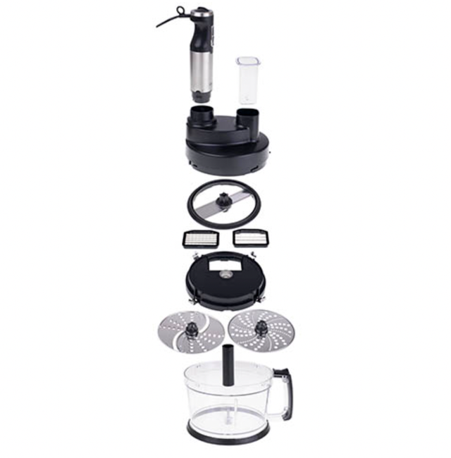 Подрібнювач подрібнює горіхи, сухофрукти та овочі, а насадка-нарізка спрощує приготування овочевих салатів і буряків до борщу.