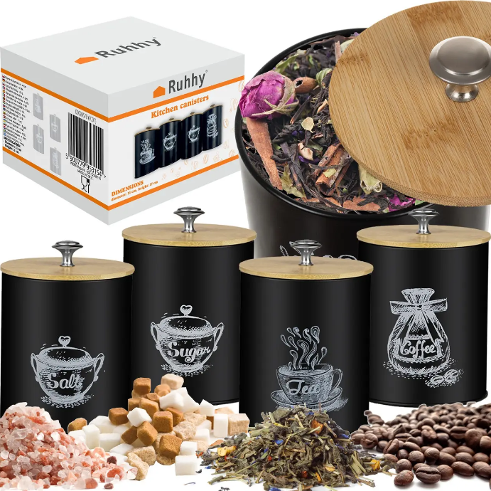 Набір ємностей для кухні 4 штуки для кави, чаю, цукру та солі Ruhhy (24578)