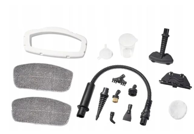- Комплектація: насадки для підлоги, щітки, змінні ганчірки, мірний стакан