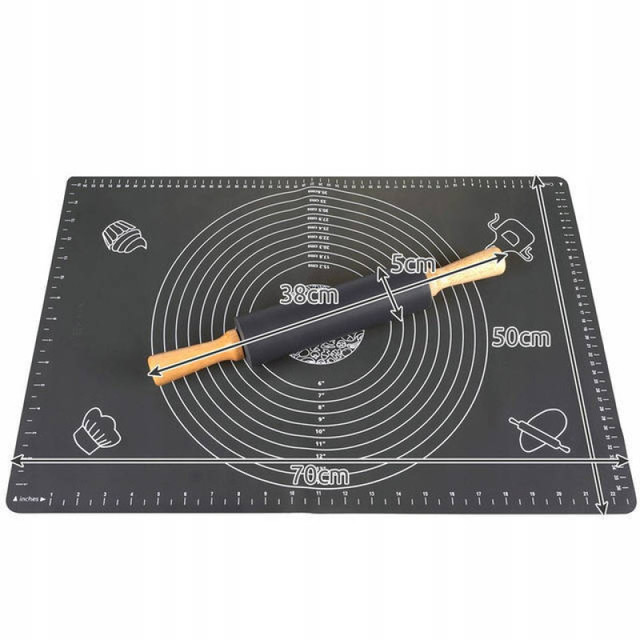 Силіконова дошка кухонна Ruhhy 23760 — це практичний аксесуар для приготування тіста та випічки. Вона легко прилягає до поверхні столу, не ковзає і не вбирає запахи. На поверхні нанесені мірні поділки для зручності роботи. У комплект входить валик із дерева та силікону, який дозволяє рівномірно розкачувати тісто. Дошку можна використовувати як килимок для випікання, підставку для гарячого посуду або як основу для замісу тіста. Матеріал стійкий до високих і низьких температур та легко миється в посудомийній машині.